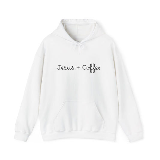Jesus + Coffee Unisex Heavy Blend Hoodie, Inspirational Sweatshirt, Cozy Gift for Coffee Lovers, Faith-Based Apparel, Christian Hoodie