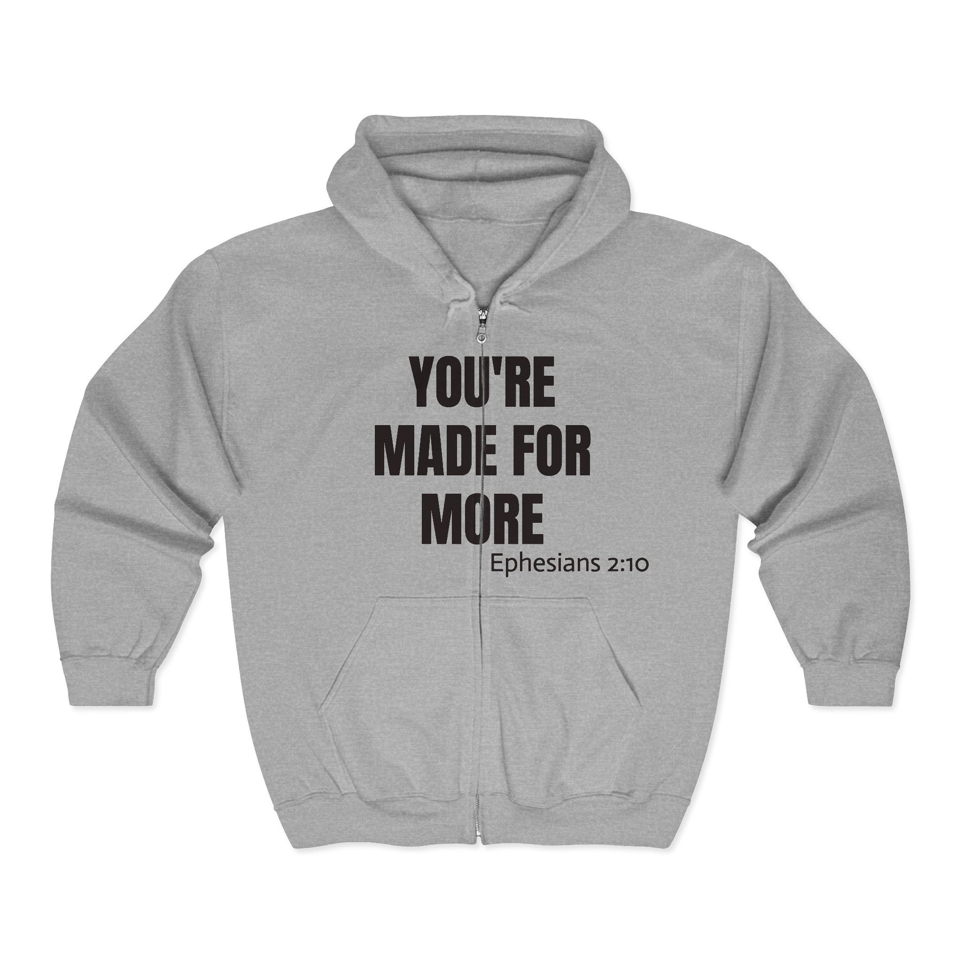 Full-Zip Hoodie — "You're Made For More" Inspirational Zip-Up