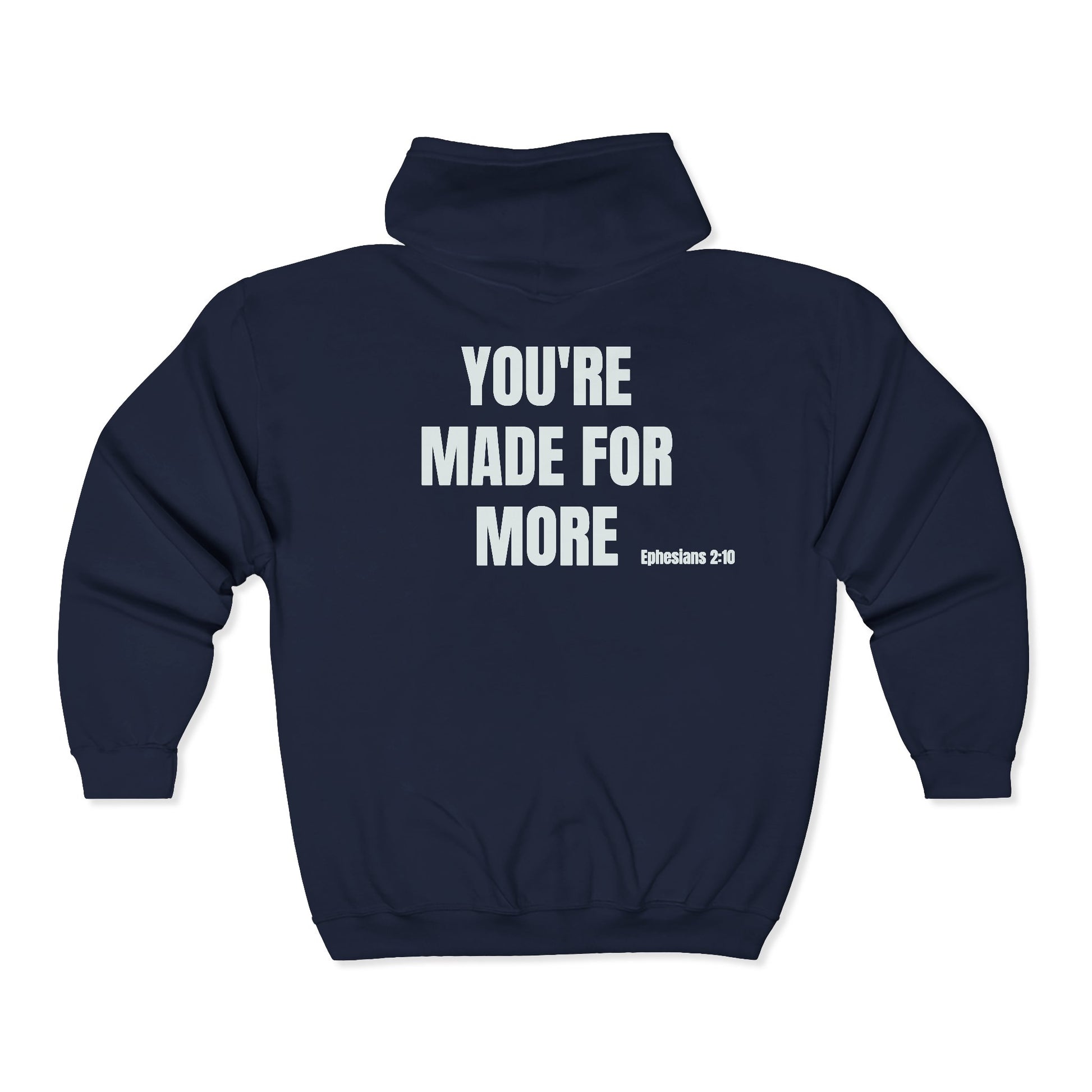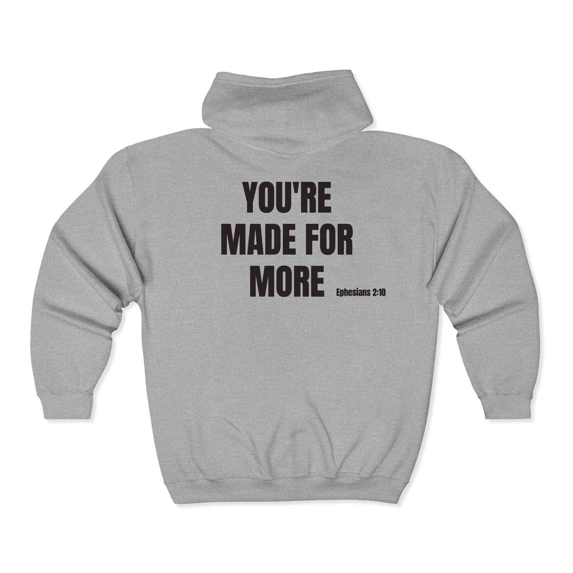 Inspirational Zip Hoodie - "YOU'RE MADE FOR MORE" Back Print (Ephesians 2:10)